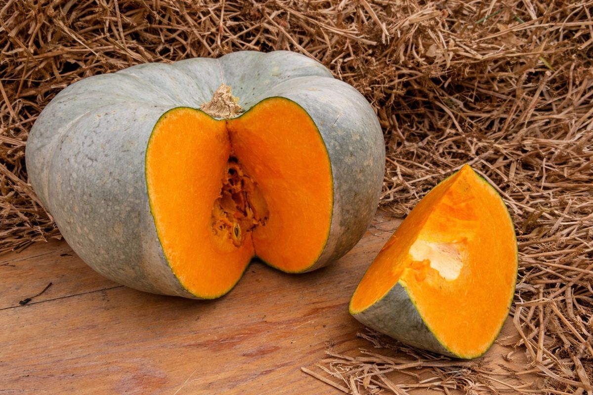 Мякоть жёлто-оранжевая, плотная, суховатая, со средней сладостью. Хаббард не относится к десертным сортам, но для запекания и каш подходит хорошо. Главное достоинство – феноменальная лёжкость: тыква может храниться до года, не теряя качества. Это рекордсмен среди всех типов тыкв. Выбор для тех, кому важно сохранить урожаев на максимально долгий срок.