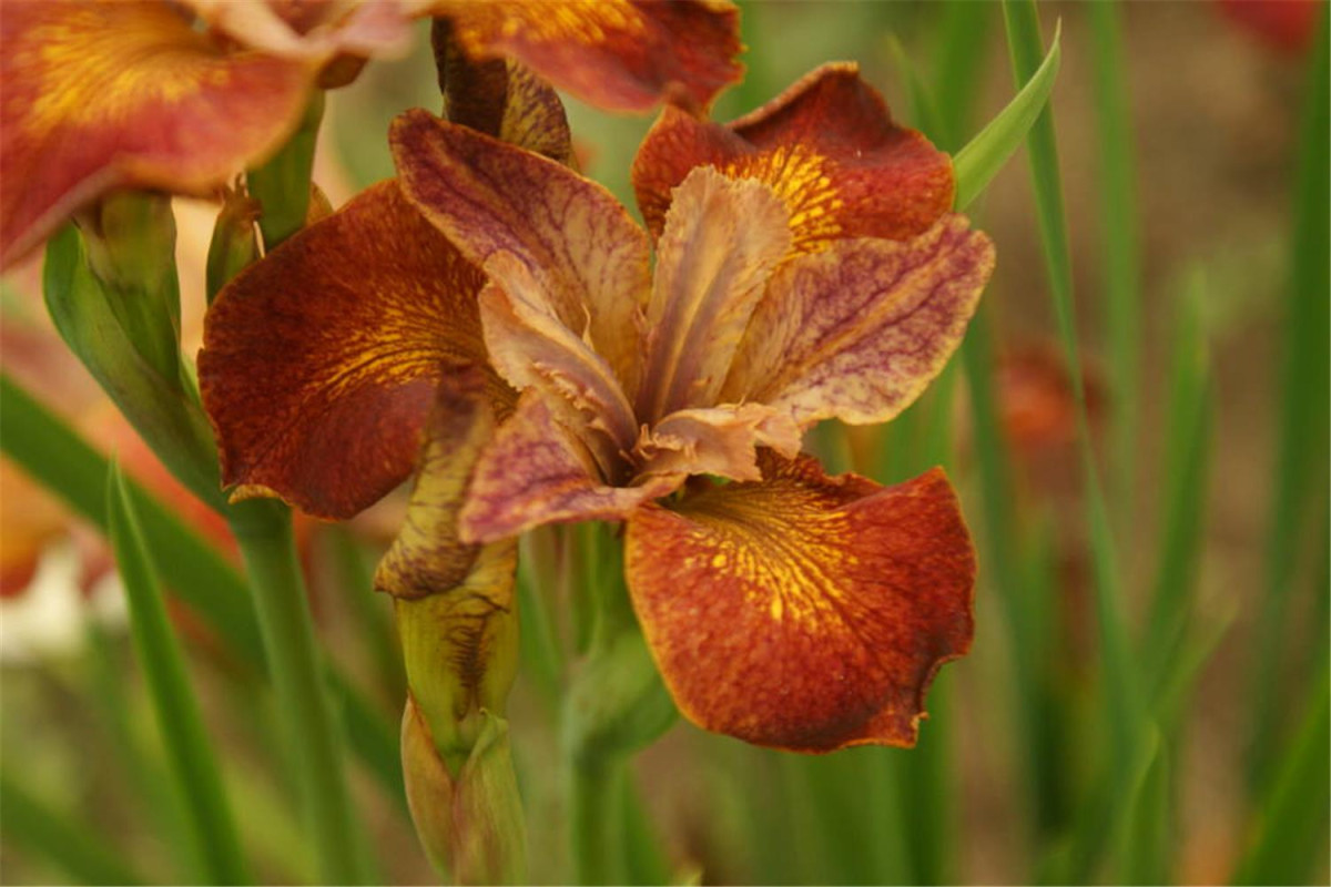 Гибрид, полученный на основе ириса сибирского, отсюда и нетипичная для вида окраска. Внутренние доли розово-сиреневые, внешние — коричнево-бордовые с ярко-желтым «сигналом». Высота 40-60 см. Размер цветка 12 см, на одном цветоносе 2-3 шт. Цветение в июне-июле и повторно одиночными цветками осенью.