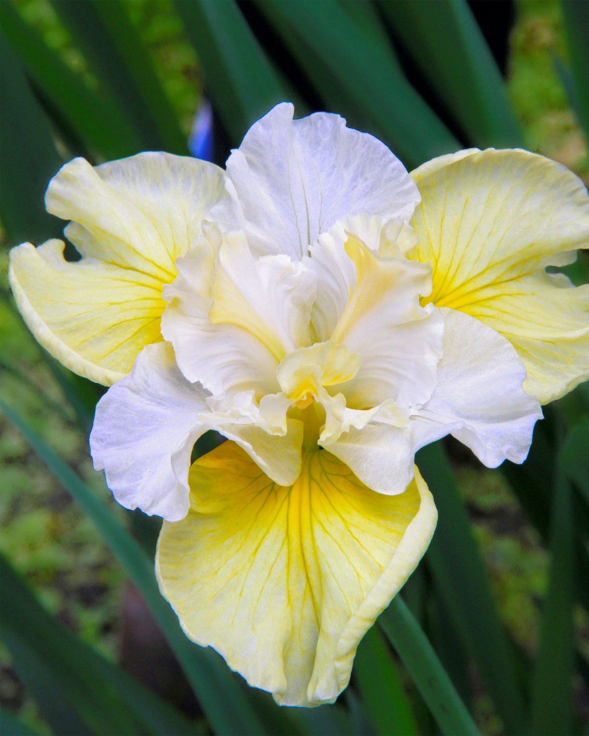 Очень нежный высокорослый (100 см в цветении) ирис с белыми внутренними и светло-лимонными внешними долями. Размер цветка 13 см. Цветет с конца мая до конца июня.