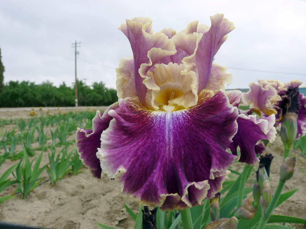 Высокорослый (80 см) сорт с очень крупными (21 см) цветками. Окраска пурпурно-фиолетовая с синими прожилками и желтым «сигналом». Зацветает в июне.