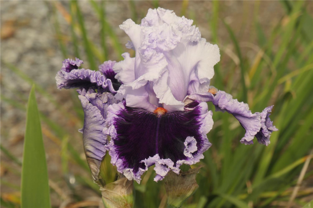 Высокорослый (89 см) сорт, выведенный в 2012 году. Цветки крупные (13 см), верхние доли белые, нижние — бархатистого фиолетового цвета со светлым кантом. Цветет в поздние сроки.