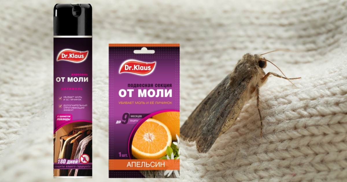 Незримый, по очень прочный щит от моли создаёт и аэрозоль Dr.Klaus. Его лучше использовать для борьбы и профилактики появления моли в больших по объёму одёжных шкафах или целых гардеробных.