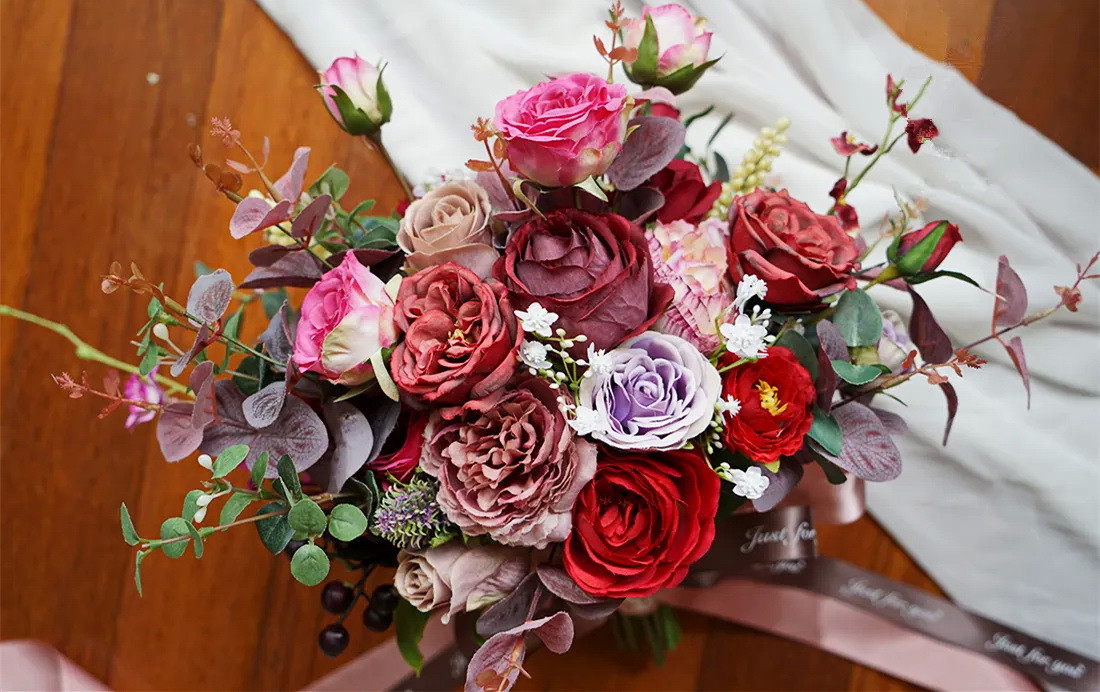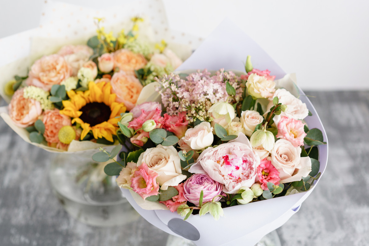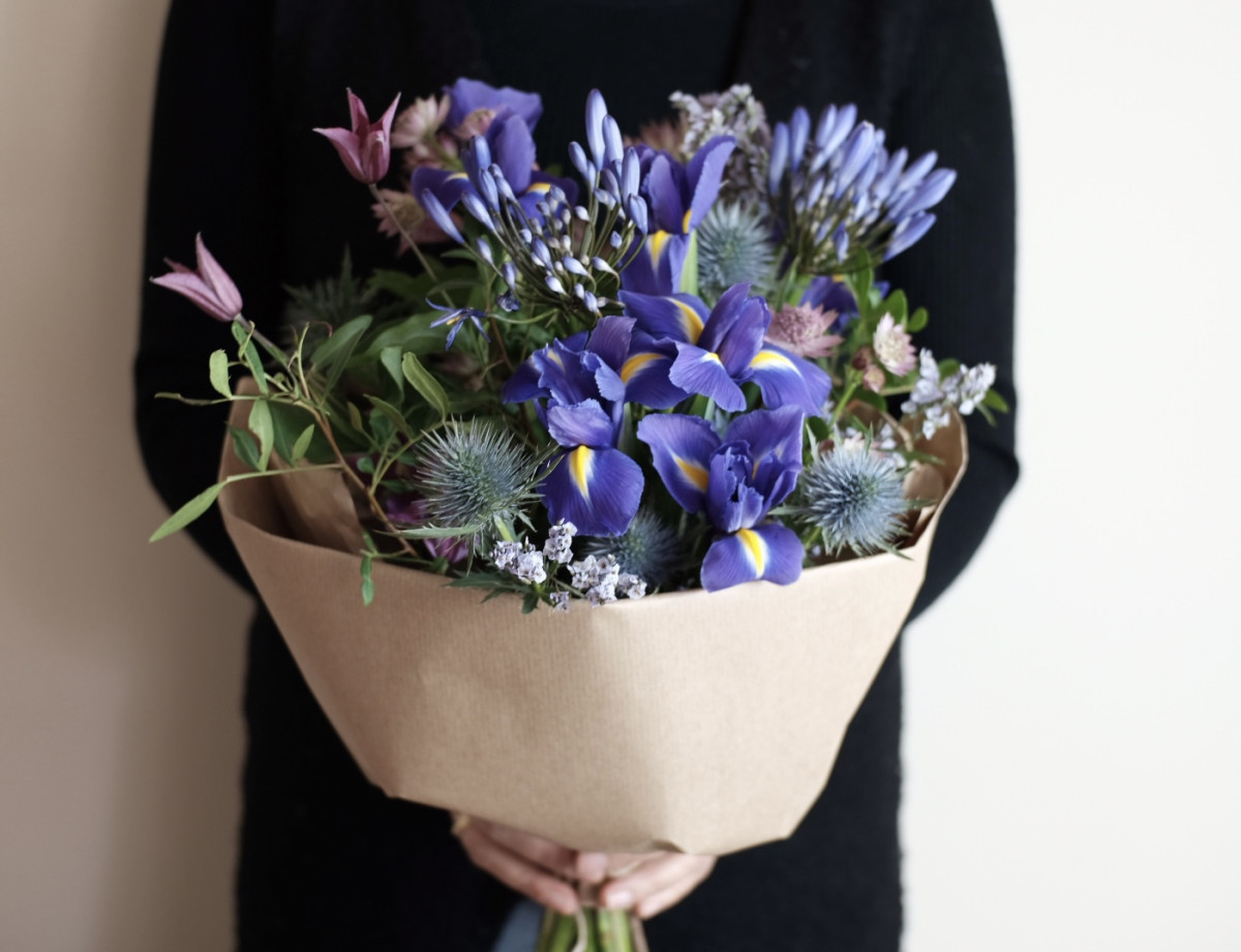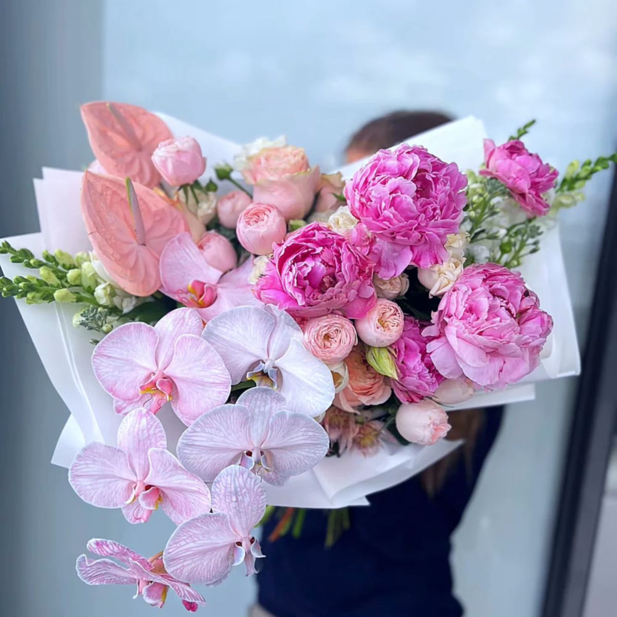 Благодаря большой цветовой палитре этого цветка, от белого и нежно-розового до синего и фиолетового, такой букет не будет выглядеть скучным и точно порадует своего получателя.