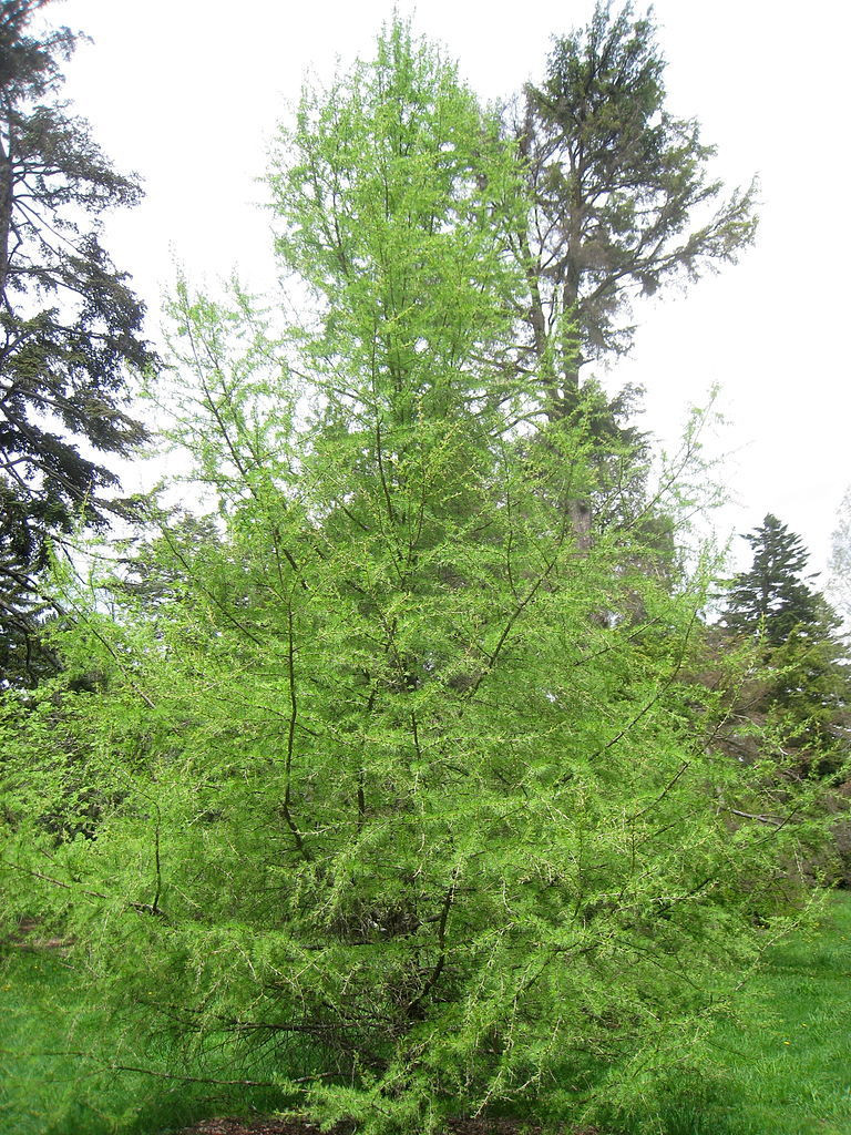 Лиственница американская, или восточная (Larix laricina) — это коренная американская разновидность 23-х метров в высоту. Поскольку она хорошо переносит соль, встречается у берегов Новой Англии и восточной Канады. Дерево довольно выносливо (3 зона USDA). Лучше всего подходит для больших ландшафтов. Переносит высокий уровень грунтовых вод. Существует несколько сортов небольшого размера, подходящих для небольших садов и альпинариев: