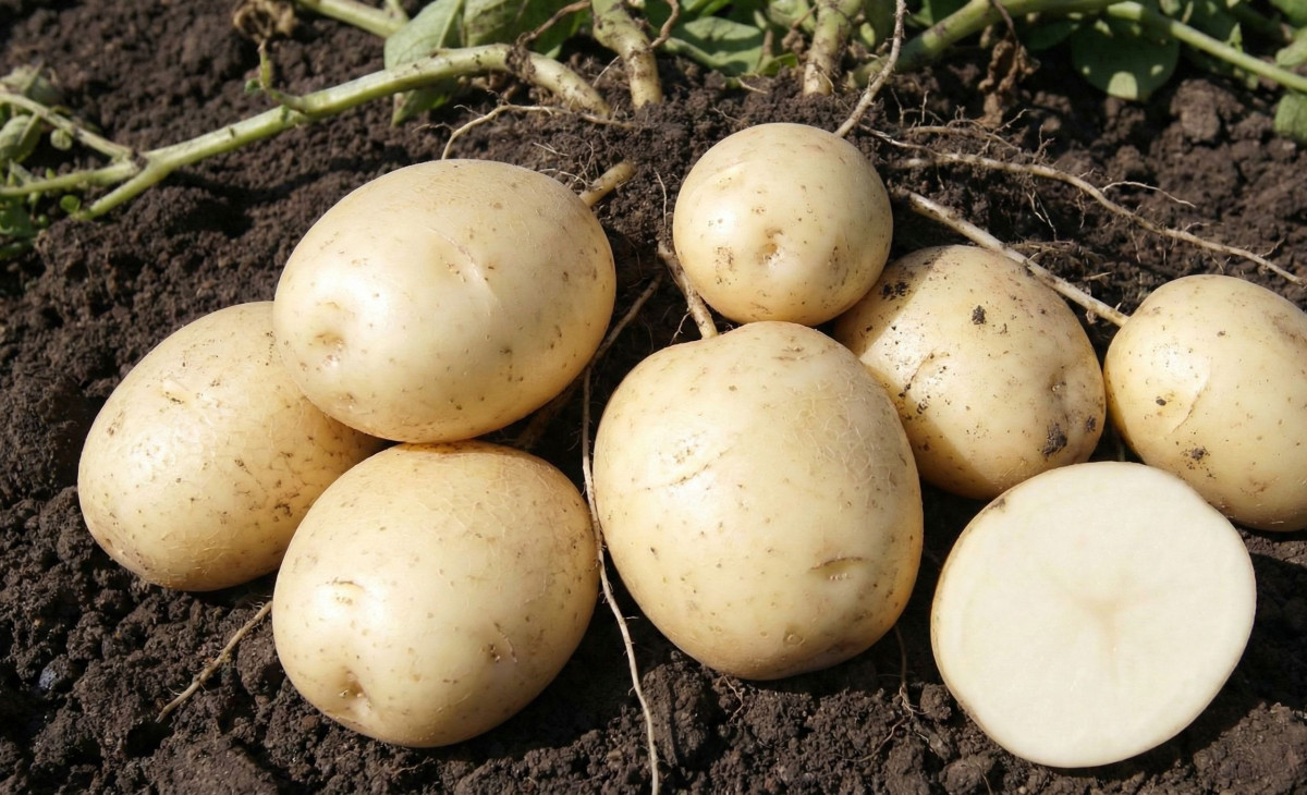Если вам нужен сорт, который гарантированно пролежит в погребе до самого лета, не потеряв ни вкуса, ни вида, выбирайте Скарб. Это белорусский сорт, который словно создан для длительного хранения. Клубни плотные, ровные, красивые, без глубоких глазков. Лежит так, будто время для него остановилось. Урожайность высокая, с сотки можно снять 500-600 кг при нормальном уходе.