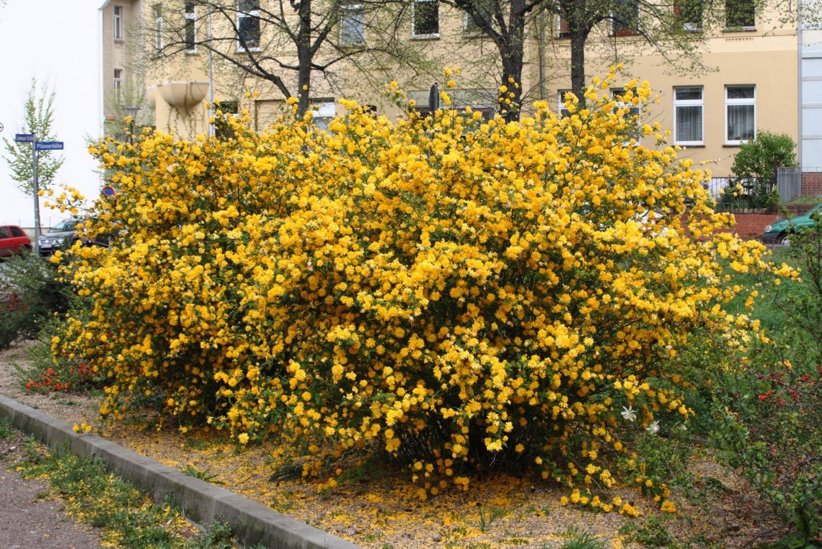 Конечно, при выборе места посадки стоит учитывать и эстетическую сторону (ландшафтный дизайн) вашего участка. Куст крупный и привлекающий внимание, а значит — отличный солитер, причём даже на газоне (ухаживать и топтаться много не придётся, можно и вовсе отказаться от приствольного круга). Отличная живая изгородь из керрии японской получается, особенно для садов в «природном» стиле.