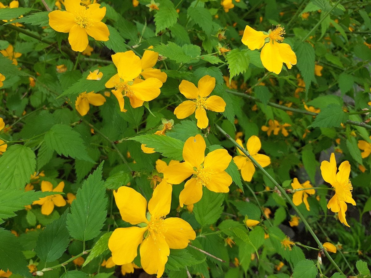 Есть у меня желание выращивать в саду растения неприхотливые, но при этом декоративные на протяжении долгого времени. По мере возможности, собираю именно такие растения. Кроме красивых цветов, обращаю внимание и на красоту листьев, и на общий силуэт. На этом пути встречаются и приятные открытия, и огорчения (куда же без них). Открытием была для меня керрия японская — один из немногочисленных кустарников, способных расти практически без моего вмешательства, но при этом вырастать высоким и раскидистым, обильно и долго цвести (с апреля и до октября), иметь яркую и насыщенную зелёным цветом листву.