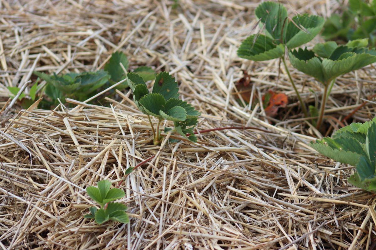 - Солома – классический вариант. Легкая, воздухопроницаемая, хорошо держит влагу, ягоды на ней чистые. Минусы: в соломе могут быть семена сорняков, и она довольно быстро слеживается за сезон.