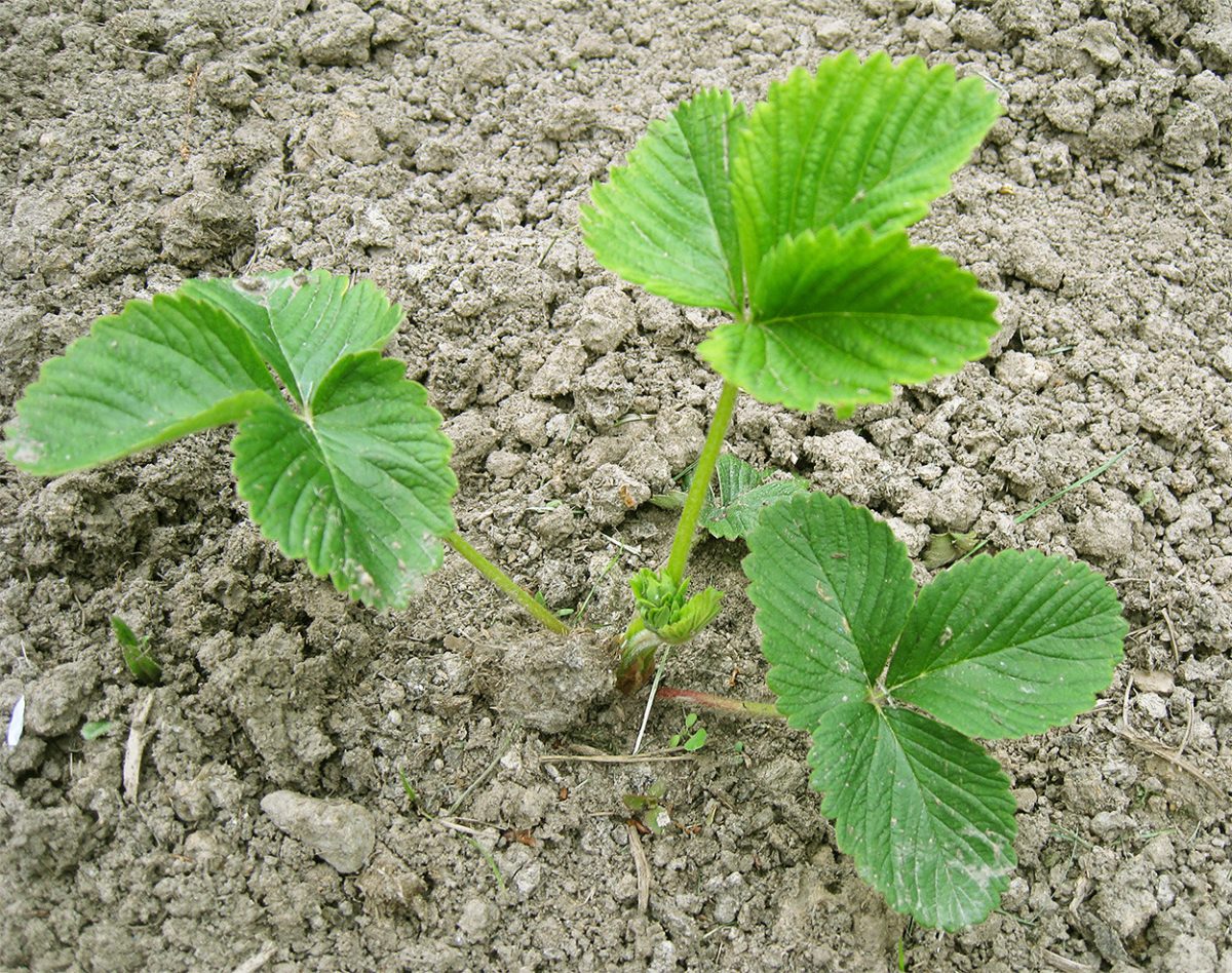 На посадку нужно отобрать крепкие кустики. Лишь они легко переживут зиму и в будущем дадут максимальный урожай. Рассада должна иметь здоровое основание с 3–4 ярко-зелёными листьями на коротких, не вытянувшихся черешках, а также мощную корневую систему длиной не менее 5 см. Если вы выкапываете посадочный материал со своей плантации, то выберите хорошо развитые розетки с самых продуктивных двухлетних или трёхлетних кустов. У сортов, не дающих усов, для размножения методом деления также выбирают 2–3-летние растения.