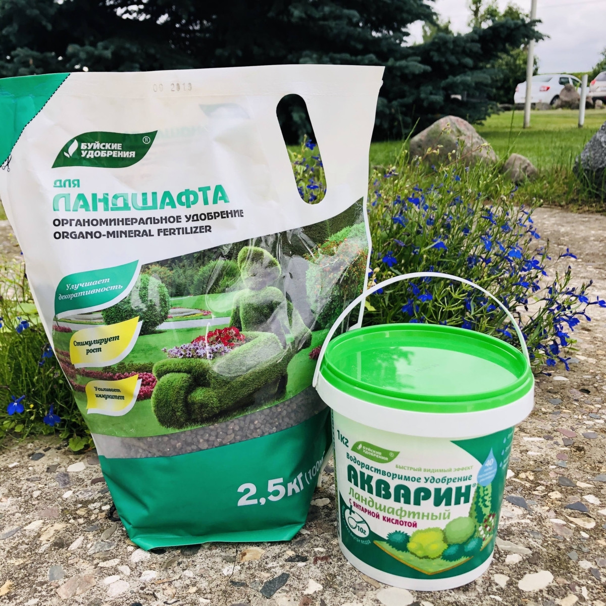 Например, комплексное водорастворимое удобрение Акварин «Ландшафтный» – это универсальное средство, которое отлично подойдет для некорневой подкормки декоративных деревьев, кустарников, также многих других однолетних и многолетних растений. В его состав, помимо железа, магния, цинка и других необходимых растениям компонентов также входят хелатные микроэлементы, которые легко усваиваются растениями, а также защищают от хлороза и дефицита микроэлементов. Янтарная кислота в составе удобрения Акварин «Ландшафтный» нормализует микрофлору почвы, стимулирует корнеобразование (что особенно ценно при пересадке в новый контейнер!), ускоряет рост растений и повышает устойчивость к засухам, переувлажнениям, заморозкам и обработкам ядохимикатами.