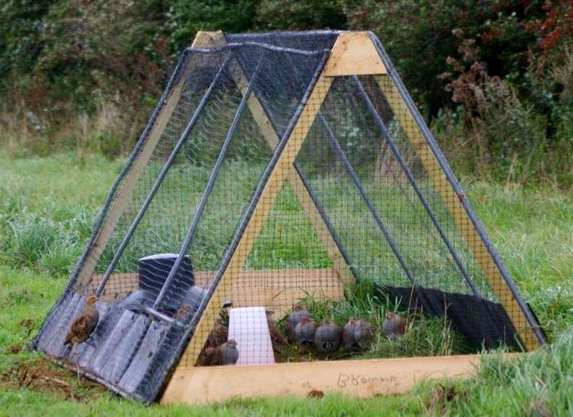 Когда молодняк оперится, его переселяют в вольер. Такое устройство может быть прямоугольной формы. Интересны вольеры, сделанные в форме пирамиды, они просторны и занимают мало места. Для пирамидальных вольеров создается основа из деревянных сляг либо из металлических труб таким образом, чтобы она образовала каркас в виде треугольника. При этом наверху данные материалы хорошо скрепляются, а внизу металлические трубы можно вкопать в землю, деревянные сляги зафиксировать на основе из брусков. Сверху эта конструкция обтягивается мелкоячеистой сеткой. С одной стороны предусматривается дверка для птицевода.