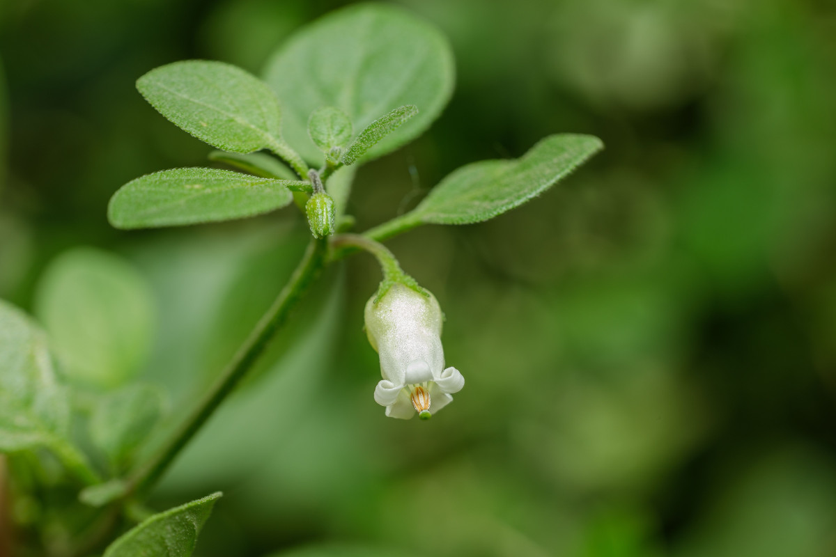 В начале лета цветёт крошечными (1–1,5 см) белыми цветочками, в которых угадывается некоторая схожесть с ландышевыми. Я бы описала цветок как недозакрытый бочонок (иногда с «талией»), к верхнему краю которого пристроены крошечные лепестки, завёрнутые, как у кудреватой лилии. Наружу торчат пестик и тычинки. Цветки располагаются в пазухах листьев по одному или по два. В общем, вся схожесть с ландышем — поникающие белые мелкие колокольчиковые цветочки. И то издалека. Аромата нет. После крошечных (надо специально разглядывать) цветков появляются крошечные же овальные зелёные плодики, которые в процессе роста и созревания увеличиваются в размерах до 1–1,5 см и окрашиваются в белый или слегка кремовый цвет. Плоды сладкие странной сладостью и ароматные.