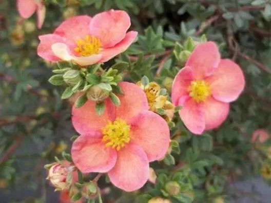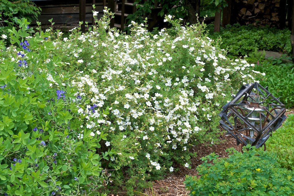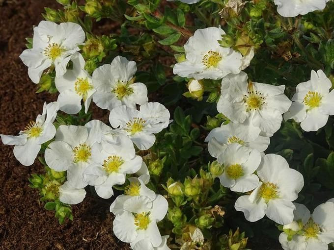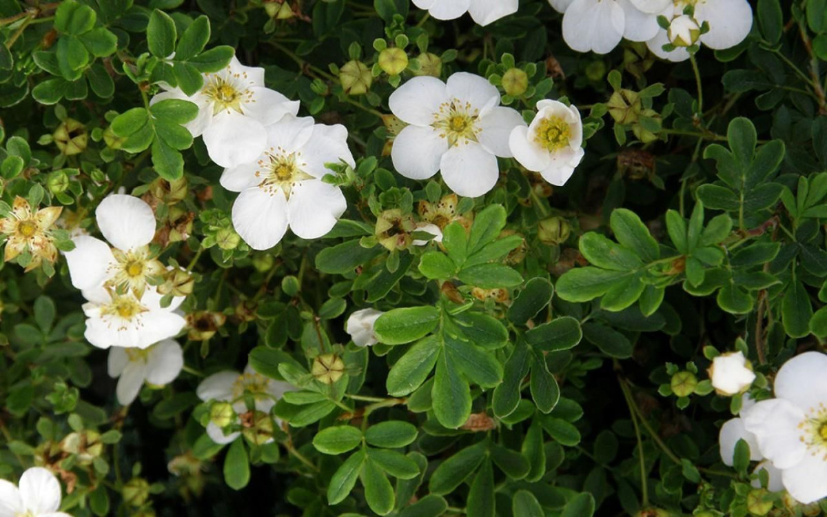 Хороши они и в качестве подбивки деревьев с ажурной кроной, как окантовка газона, на каменистых склонах у водоёмов. Даже в розариях пятилисточники со своими мелкими шелковистыми листиками и некрупными цветочками вполне уместны, нужно только палитру подобрать. Кустарники с белыми цветкам и тёмной листвой послужат прекрасным фоном для тёмных роз, белые же розы выиграют от соседства с красноцветковыми. В общем, каждый садовод — сам творец своего садового счастья!
