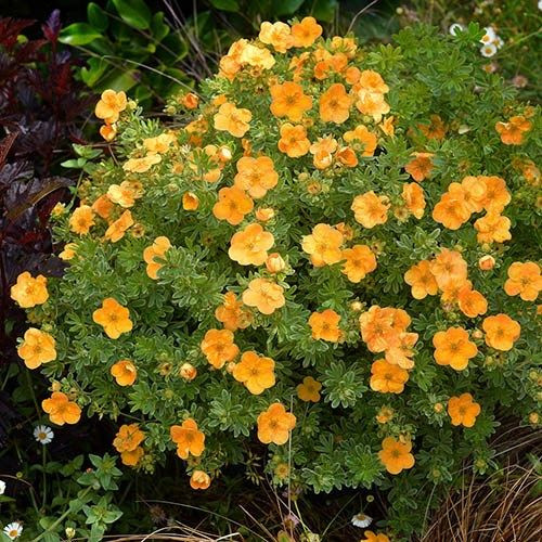 С полумахровыми оранжевыми цветками сорт «Оранж Иссима» (Potentilla fruticosa ‘Orang ISSIMA’),