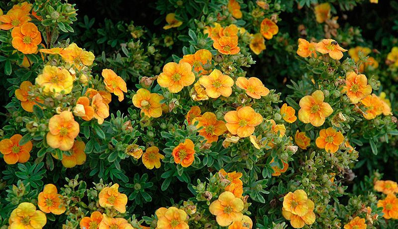 Ярко-оранжевый сорт «Белла Соль» (Potentilla fruticosa ‘Bella Sol’); (0,3; 0,3; 5).