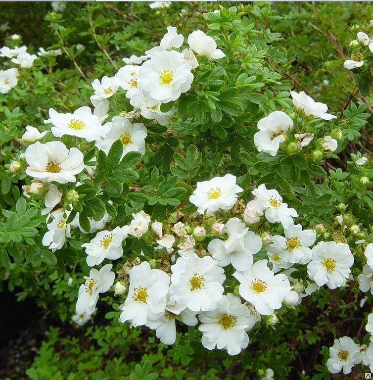 Белый сорт «Сноубёрд» (Potentilla fruticosa ‘Snowbird’); (0,7; 1; 4).