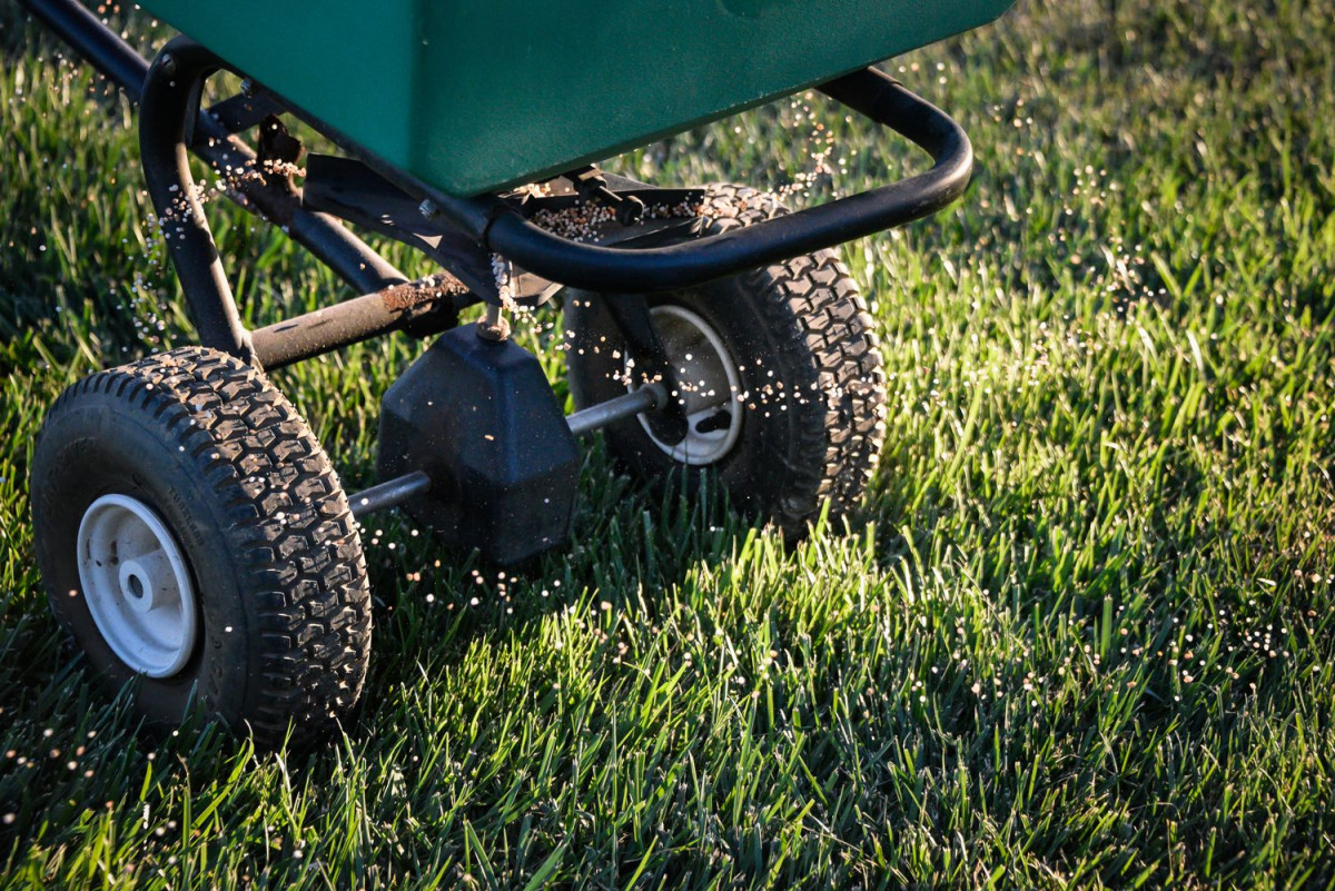 Проходят участок скарификатором минимум дважды: в одном направлении, затем под углом в 45 градусов. После каждого этапа граблями убирают мусор. Чтобы помочь газону восстановиться, подсевают семена и подсыпают удобрения.