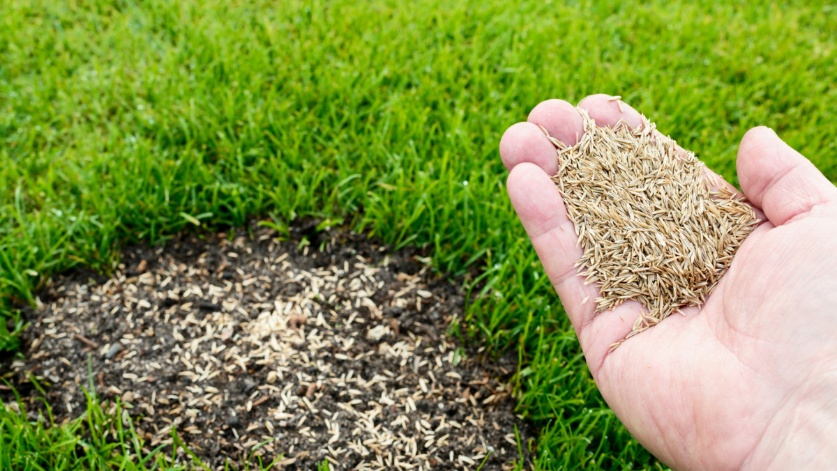 Перед посевом газон косят. Затем в нужных местах надрезают дернину на глубину 4-5 см и в образовавшиеся ямки или вразброс подсыпают семена. Мульчируют торфом, поливают и прикатывают катком. Более поздний посев (в октябре-ноябре) тоже возможен, но только в регионах без зимних оттепелей. Газонные травы подсевают при температуре не выше +3°, чтобы газон не взошел, увеличивая расход семян в 1,5-2 раза. Мульчируют смесью земли и песка в пропорции 3:1 и не поливают.