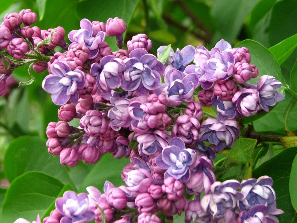 Цветки не только простые, но и густомахровые, часто очень крупные, до 4 см в диаметре. Соцветия разной плотности и величины, и, бесспорно, главное у сортов сирени обыкновенной — большое разнообразие в окраске цветков, которое в результате селекции дополнилось не только различными оттенками сиреневого, но и новыми цветами — чисто розовыми, голубыми, пурпуровыми и даже желтыми.