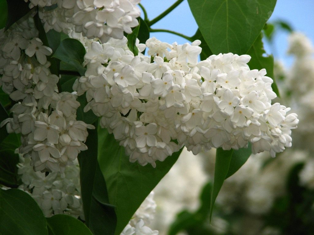 Сорт «Моник Лемуан» (Monique Lemoine) — бутоны кремовые, чуть зеленоватые, напоминают бутоны махрового левкоя, цветки чисто белые, как снежные хлопья, очень крупные, диаметром 3 см, густомахровые. Кусты средней высоты. Цветет продолжительно, очень оригинальный густомахровый сорт сирени.