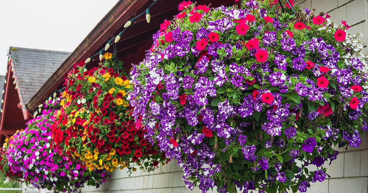 Одним из подобных вариантов будут уличные подвесные кашпо — отличный выход для тех, у кого просто нет свободных площадей. Также они прекрасно дополняют имеющиеся клумбы или другие декоративные элементы озеленения. В кашпо выращиваются неприхотливые, как правило, однолетние цветы. Давайте посмотрим, какие виды обладают оптимальными свойствами для этого.
