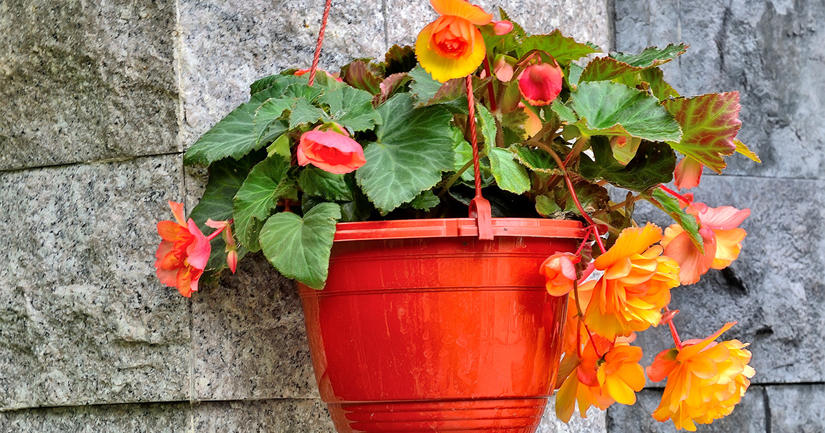 Ампельные бегонии нетребовательны к объёму грунта и отлично растут даже в стеснённых условиях. Часто в одно кашпо высаживают сразу по 2-3 клубня, направляя их рост по разным сторонам. При правильном уходе цветение очень пышное и продолжительное, но нужно быть очень осторожным с поливами — в плотном, слежавшемся грунте застой воды может приводить к гнилям клубней. Зато бегонии прекрасно себя чувствуют при недостатке света и подходят для украшения стен северных направлений.