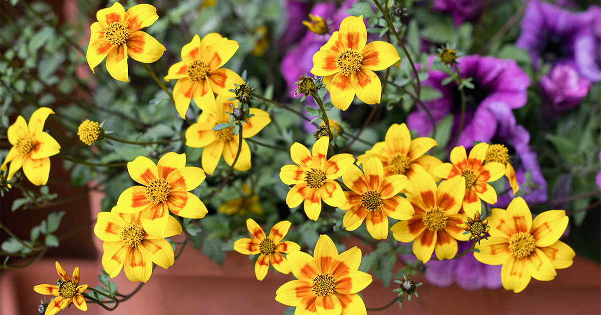Для кашпо подойдёт и биденс, или декоративная череда. В основном, она выращивается как почвопокровный однолетник в бордюрах или на клумбах, но ампельные сорта выигрышно смотрятся и в кашпо. Биденс в горшечной культуре выглядит, как плотный, шарообразный куст (до 60-80 см в диаметре), состоящий из множеств тонких, но прочных побегов.