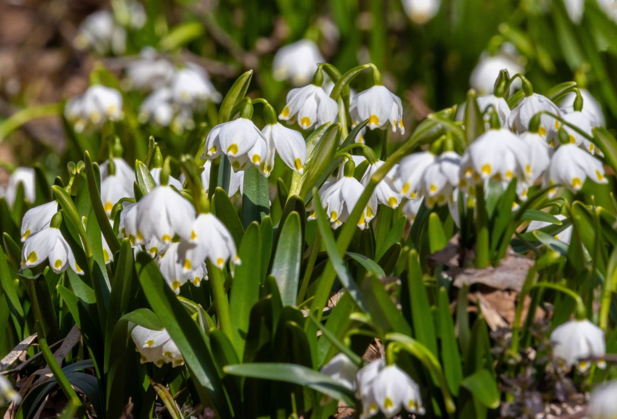 Белоцветник весенний, сорт «Вернум» (Leucojum vernum ‘Vernum’) — часто путают с подснежником, но он мощнее и дает больше пыльцы. Его колокольчики поникают вниз, защищая нектар от весенних дождей, что делает его надежным источником корма в плохую погоду.