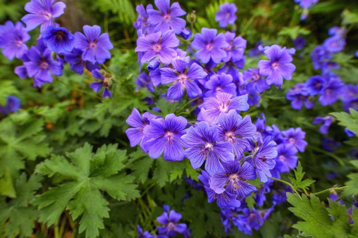 Садовые герани – прежде всего герань кроваво-красная (Geranium sanguineum) и герань луговая (Geranium pratense) – закрывают следующий этап и держат посадку дальше, когда ранние культуры уже ушли. Это спокойные, надёжные растения, которые не дают цветнику опустеть сразу после весеннего старта.