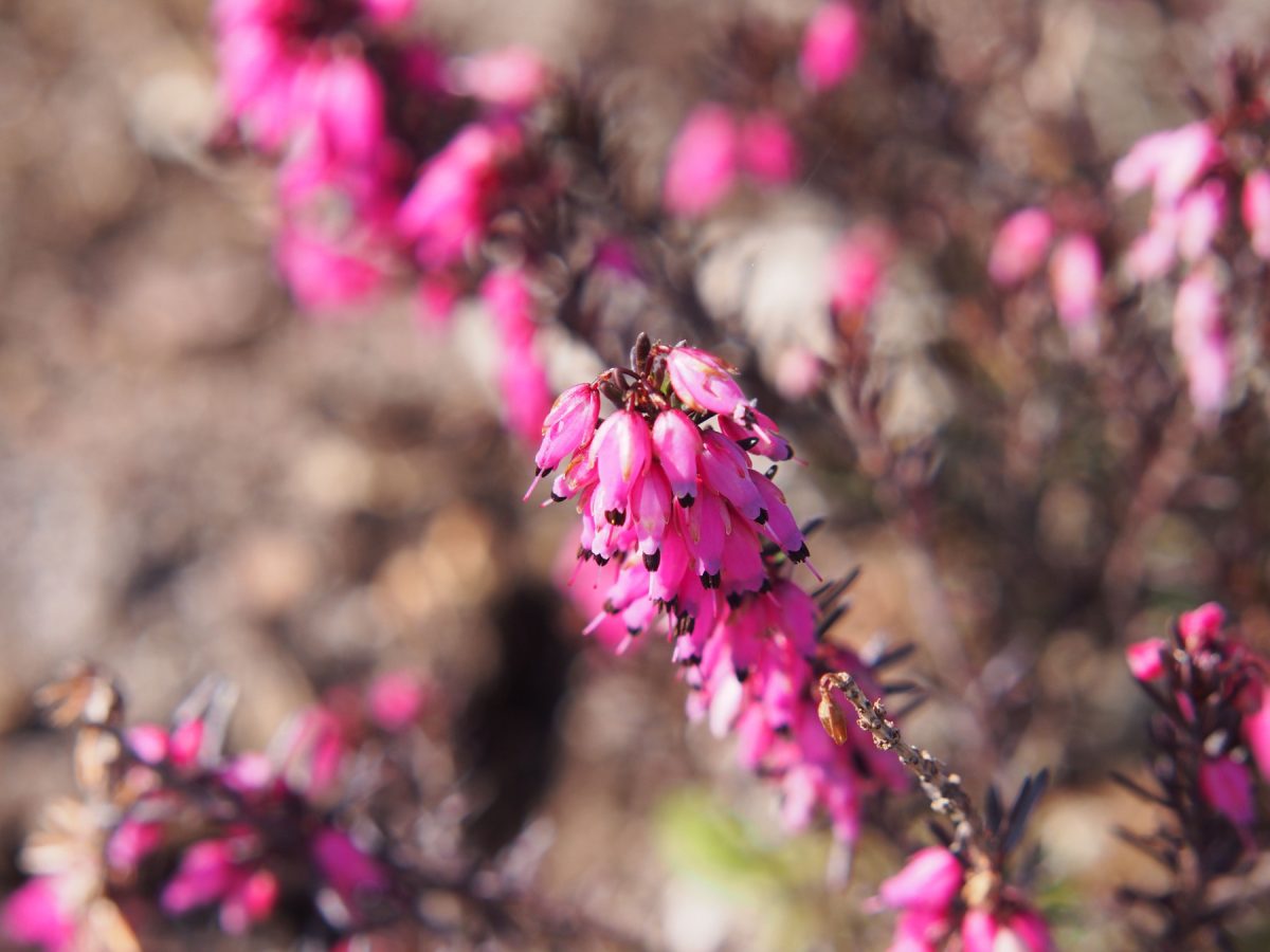 Эрика румяная, в особенности сорта «Вивелли» (Erica carnea ‘Vivellii’) создает низкий, плотный ярус. Это одно из самых ранних растений, которое покрывается сотнями мелких колокольчиков, когда основная часть сада еще спит.