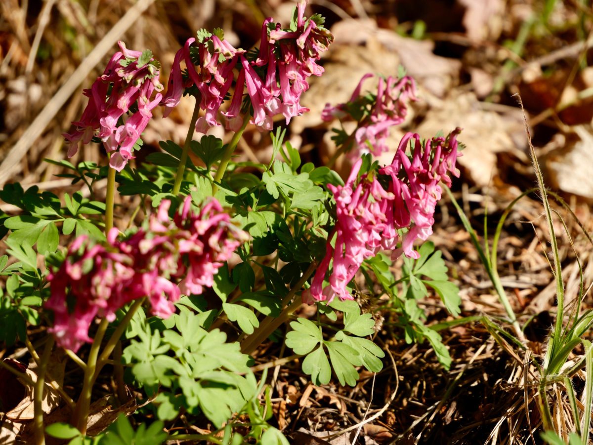 Хохлатка плотная. Это неприхотливый эфемероид, который быстро дичает и создает сплошные кормовые ковры под деревьями, заполняя паузу в питании. У меня в саду себя хорошо показал сорт «Бет Эванс» (Corydalis solida ‘Beth Evans’).
