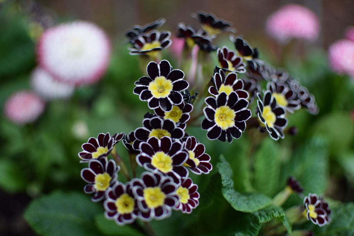 Примула обыкновенная (Primula vulgaris) хороша для переднего плана и небольших групп. Она несложная по форме, рано раскрывается и не требует вокруг себя особых условий. Также стоит обратить внимание на примулу высокую, сорт «Голд Лейс» (Primula elatior ‘Gold Laced’) — она выше и контрастнее, что делает её заметнее на фоне голой земли.