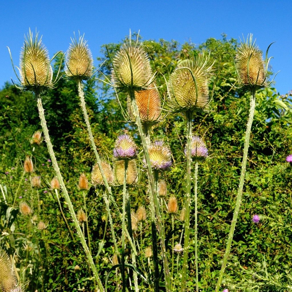 Ворсянка — один из самых эффектных сухоцветов из числа декоративных чертополохов. Это двулетнее растение, которое на второй год выпускает мощные соцветия, густо укрытые колючками. Их часто называют «шишками», столь они эффектны и массивны.