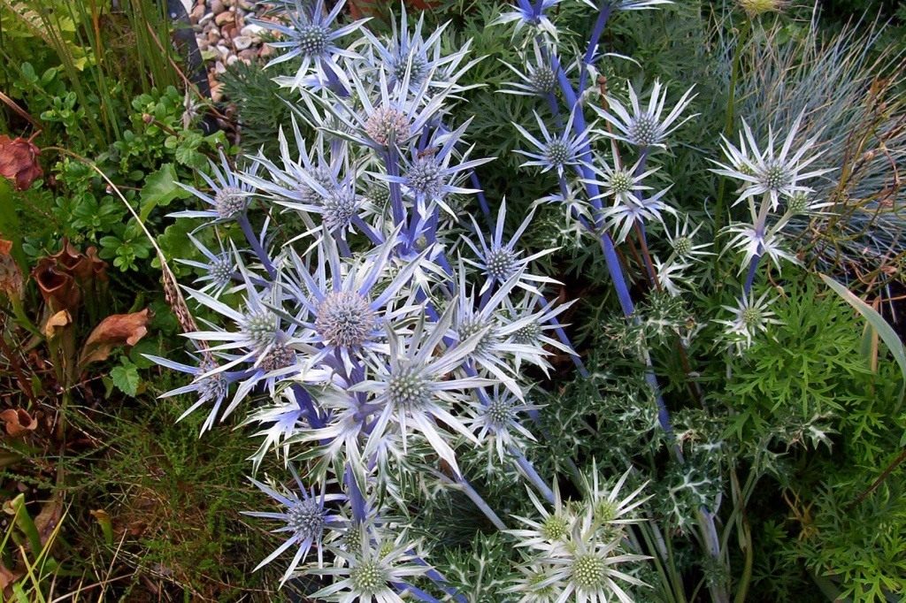 Обычно для срезки используют синеголовник плосколистный, но и синеголовник альпийский с более крупными соцветиями с похожей на кружевной воротник серебристой оберткой также очень хорош.