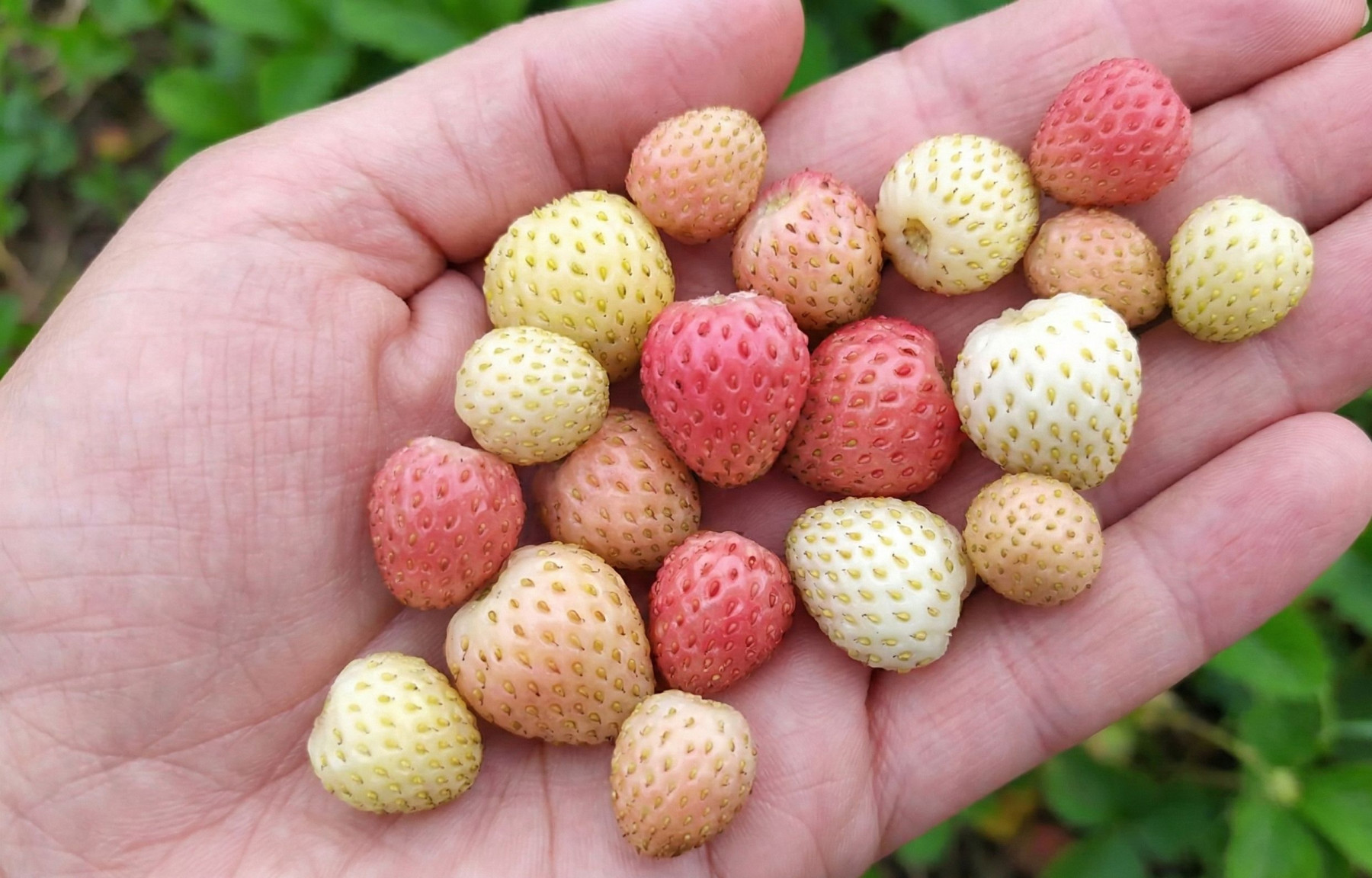 Сейчас о необычных ягодах снова вспомнили, и в продаже появились как мелкоплодные, так и крупноплодные сорта. Особенность белой, жёлтой и розовой земляники заключается в полном отсутствии (или присутствии лишь в небольшом количестве) растительных пигментов антоцианов, окрашивающих ягоды в красный цвет. При этом плоды сохраняют те же полезные вещества, что и их яркие родственники.