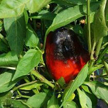 Мой отзыв: Черные плоды в технической спелости имеют нейтральный вкус без неприятного перечного привкуса. Красные приобретают очень богатый вкус и по-настоящему вкусные. Вопреки описанию, у полностью вызревших перцев, в моем случае так и не появилось остроты, не считая небольшой пряности возле плодоножки. Во вкусе и запахе перца четко ощущаются приятные дымные нотки. Стенки 4-5 мм. Плод очень сочный. Сорт мегаурожайный, ранний и невысокий. Он рос у меня в контейнере и очень красиво смотрелся среди цветов.