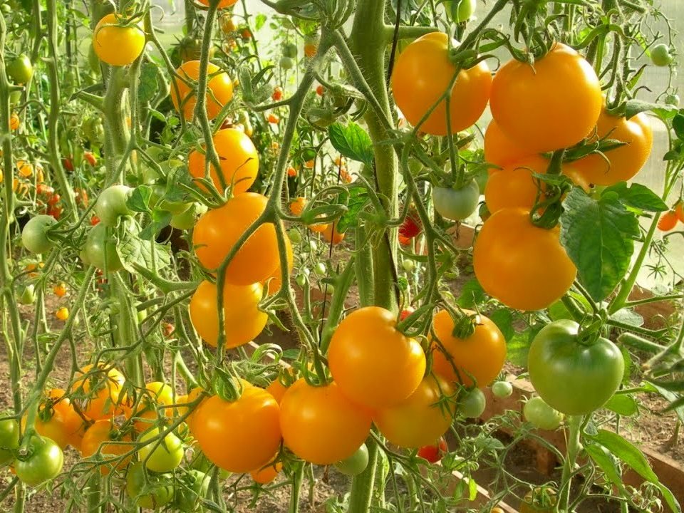 Еще можно ориентироваться на скороспелость и высоту куста. Так, в условиях открытого грунта лучшим вариантом станут раннеспелые детерминантные (с ограниченным ростом) сорта: «Дачник», «Петруша огородник», «Ляна», «Боец», «Родничок F1», «Вельможа», «Москвич», «Клуша», «Дубок», «Ленинградский холодок», «Земляк», «Флажок», серия «Гном» и т.д. При желании их можно высаживать и в теплице, занимая крайние грядки под уклоном стен. Урожай у таких сортов и гибридов формируется быстро, поспевание дружное – томаты успевают созреть до конца лета.