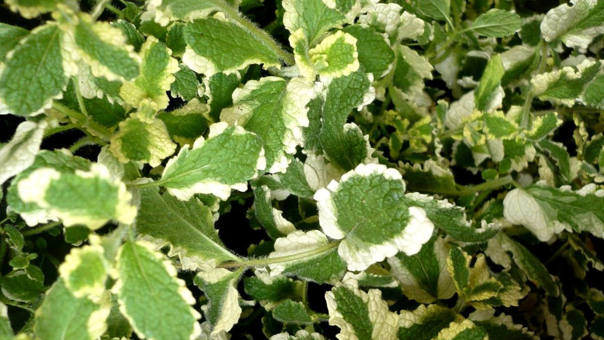 Мята перечная «Вариегата» (mentha piperita ‘Variegata’) – отличается яркими зелеными листьями с неровной белой каймой, высота – 40 см, нуждается в зимнем укрытии.