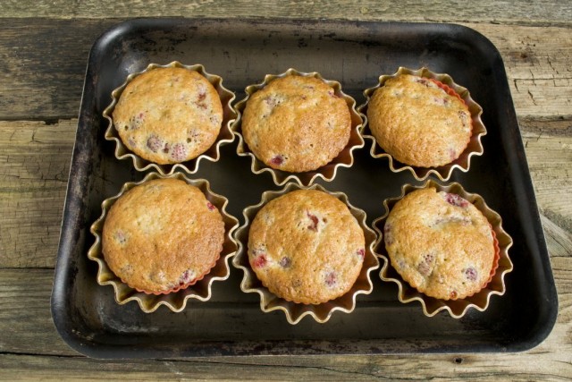 Нагреваем духовку до температуры 180 градусов по Цельсию. Устанавливаем противень с маффинами в центр нагретого духового шкафа. Печём 20-25 минут.
