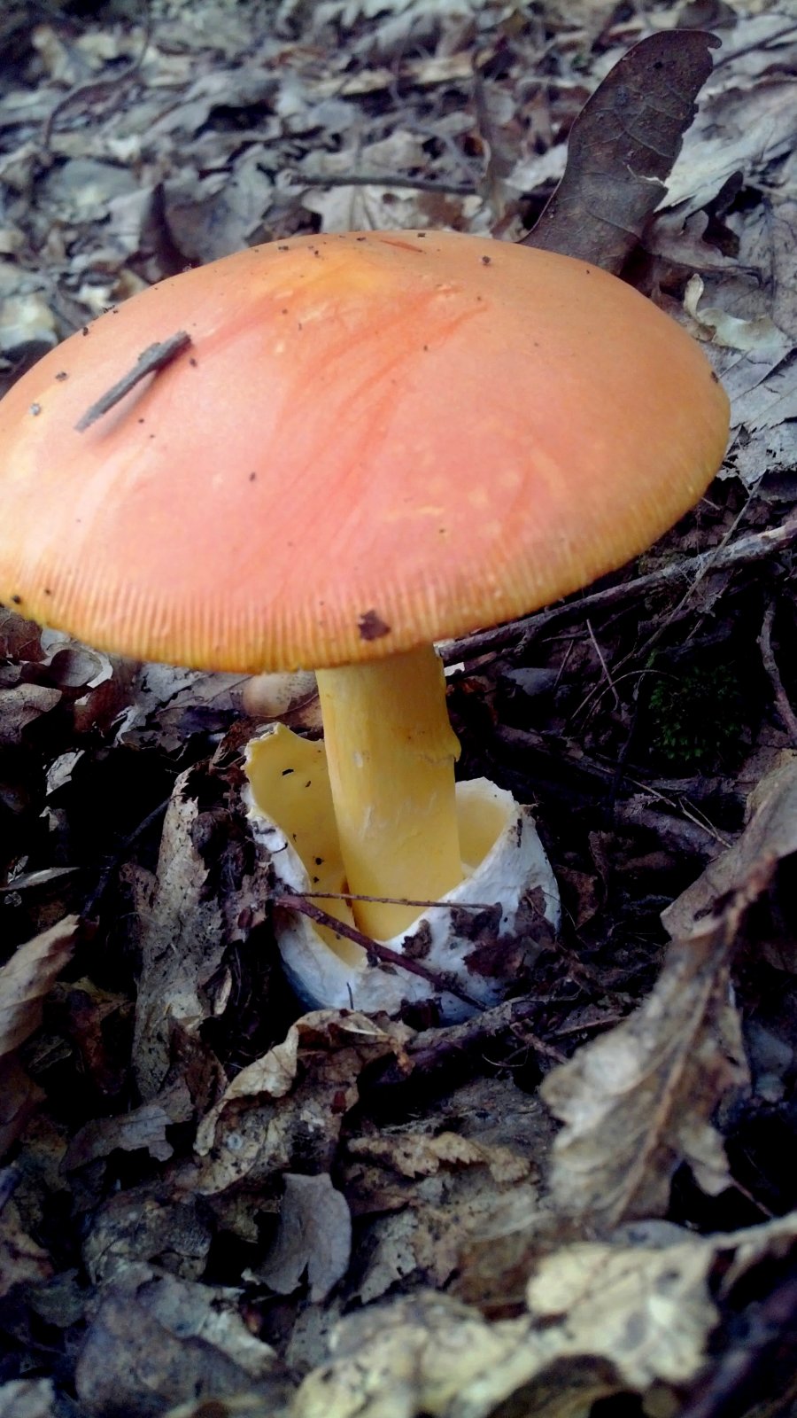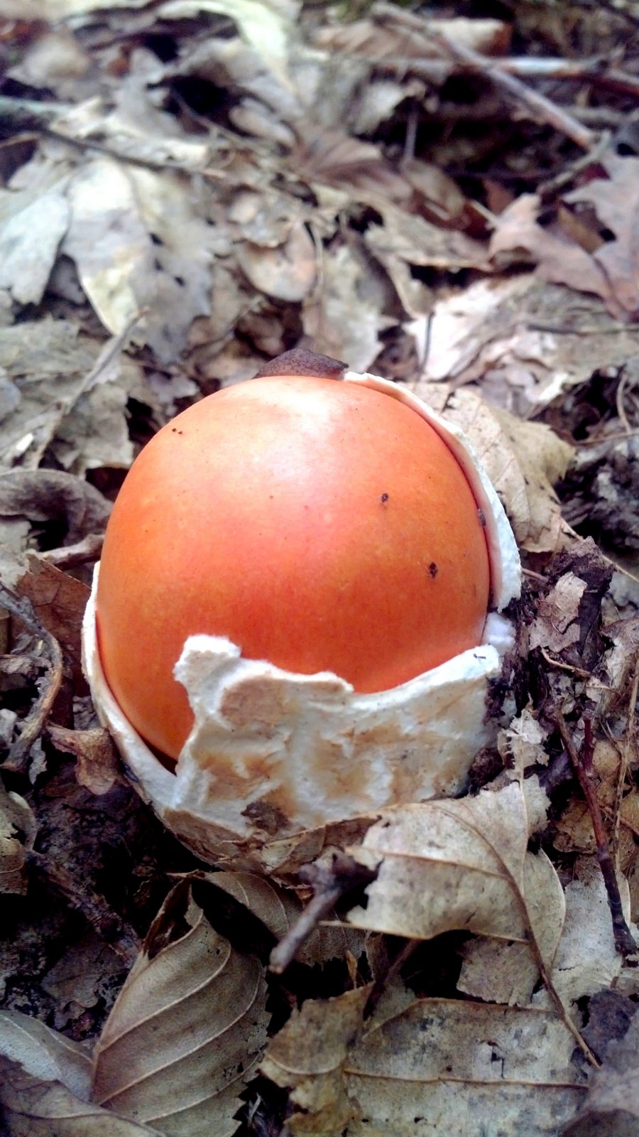 Пока тепло в лесу встречаются смешные белые крупные «яйца», из которых потом вылупляются яркие оранжевые грибы. Семейками они не встречаются, поэтому, встретив сначала яйцо, а потом гриб, понять, что это одно и то же, не так-то просто. Но внимательно рассмотрев и поковыряв одно и другое, разобраться можно.