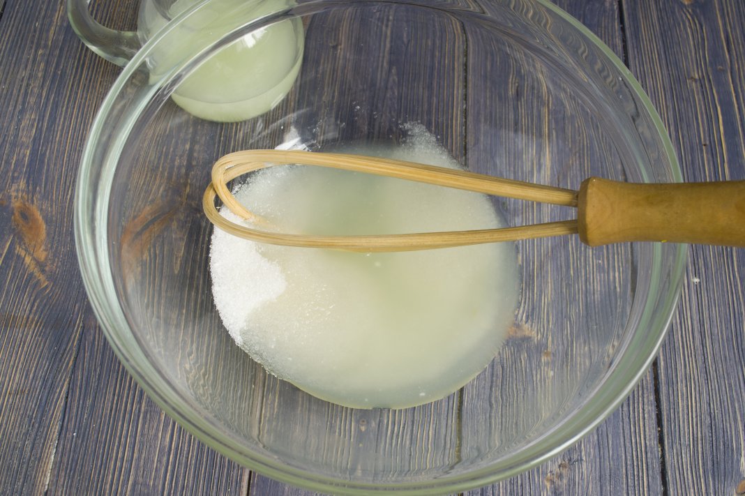 Перемешиваем ингредиенты венчиком, оставляем на 20-30 минут при комнатной температуре, чтобы крупа впитала влагу, немного набухла.