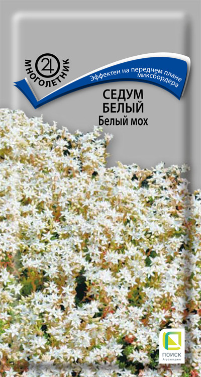 Седум белый «Белый мох», Седум ложный «Малиновый» – неприхотливое засухоустойчивое растение высотой 15-25 см со стелющимися побегами, густо покрытыми листочками. Цветки миниатюрные белые или розовые собраны в щитковидные соцветия. Декоративен в течение всего периода вегетации. Используется для создания «фоновых» пятен в каменистых садах, для закрепления склонов, эффектно смотрится на переднем плане миксбордера, ковровых клумб.