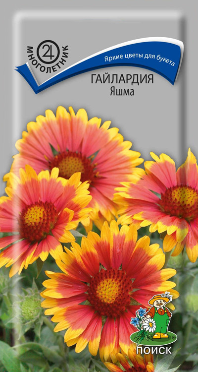Гайлардия «Янтарь» , «Яшма» – очень яркий, красивый многолетник, прекрасно подходит для бордюров, рабаток, миксбордеров, а также для срезки. Растение высотой 60 см. Длинные, гибкие, свободно приподнятые над листьями цветоносы заканчиваются крупными соцветиями-корзинками. Окраски разнообразные: винно-красная, ярко-жёлтая, двуцветная. Цветение обильное и продолжительное.