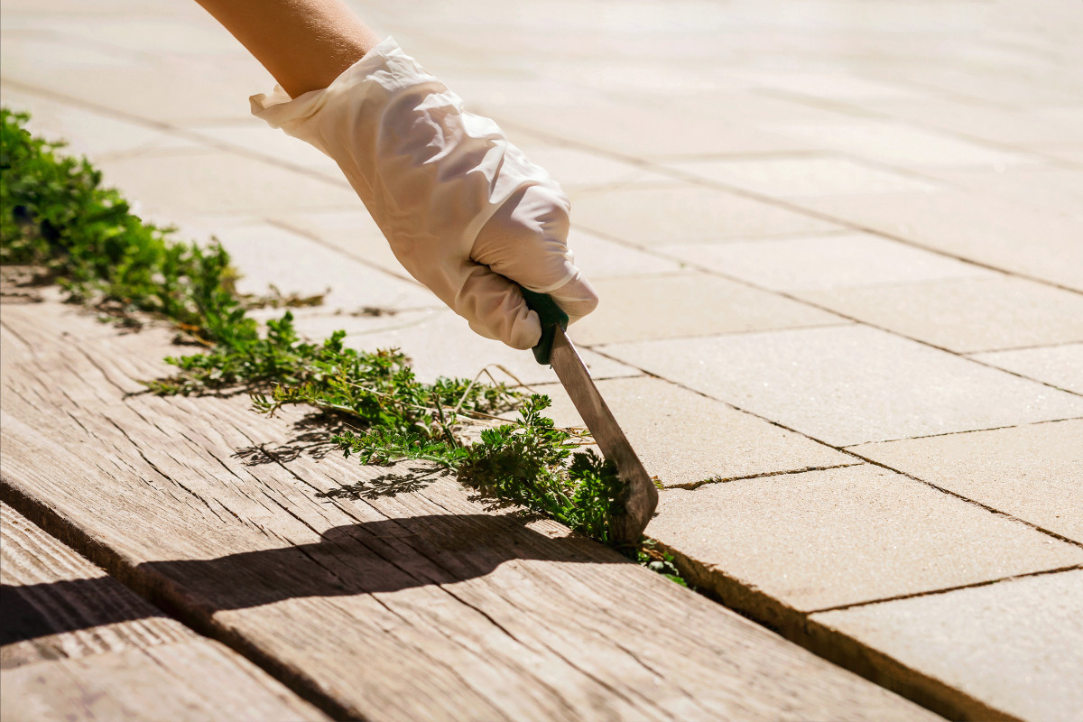 Совет! Удалять из плитки сорняки лучше после дождя, из влажной земли их легче подцепить или вырвать с корнем.