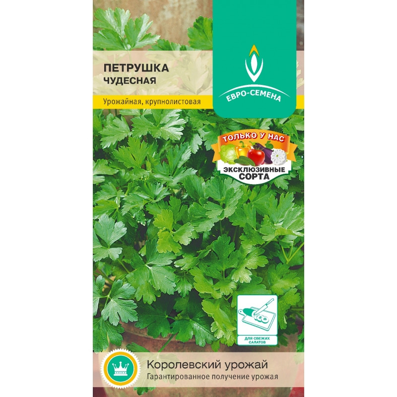 Петрушка «Чудесная» — прекрасный крупнолистовой сорт. Ей можно и витаминный баланс пополнить, и салатик украсить.