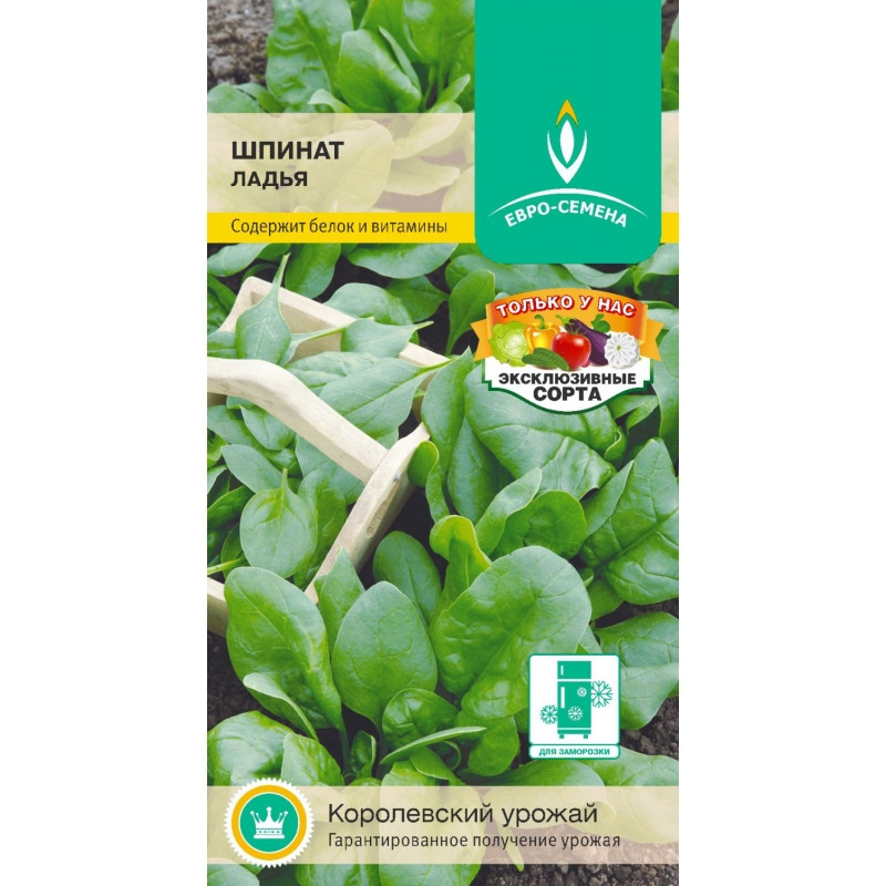Шпинат сорта «Ладья» — раннеспелый, от всходов до уборки 30 дней. Масса одного растения до 50 грамм.