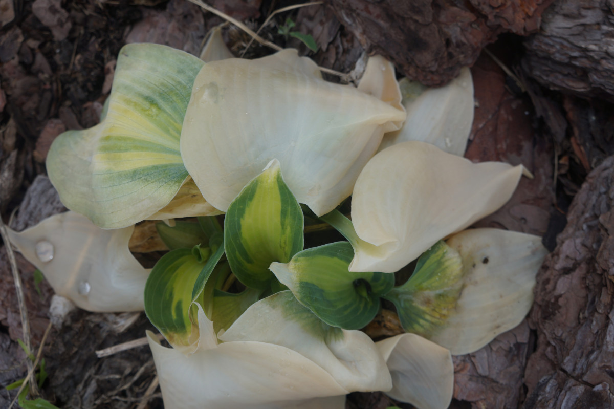 Из многолетних растений от заморозков сильнее всего страдают хосты. Сначала их листья повисают лоскутными одеялами, затем белеют и отмирают. Чем сильнее хоста успела развернуться, тем сильнее будет ущерб. Такие листья не восстановятся, но хоста выпустит новые. Иногда они могут быть деформированными и с измененным рисунком. Кустики в этом сезоне не будут такими пышными как обычно.