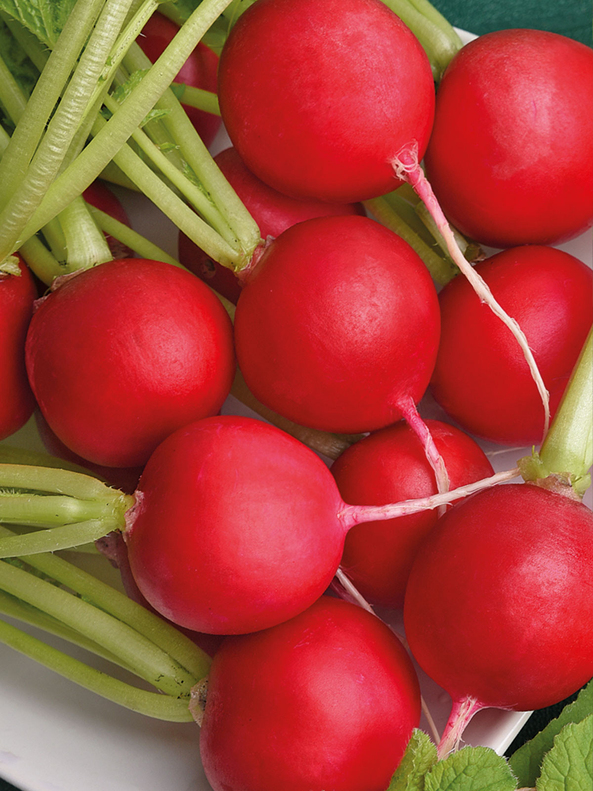 - Редис Заря – корнеплоды отличного вкуса с небольшой розеткой листьев.