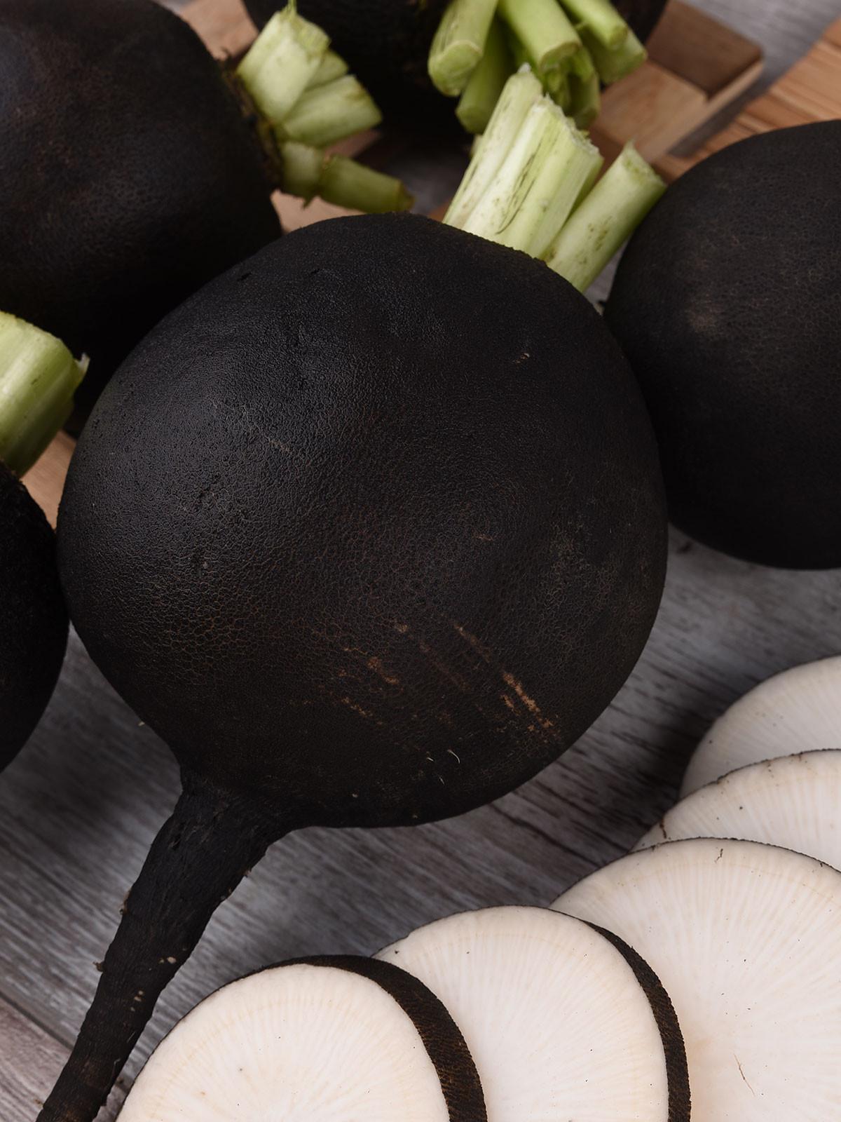 - Редька Зимняя круглая чёрная – сорт с корнеплодами остро-сладкого вкуса и лечебными свойствами.