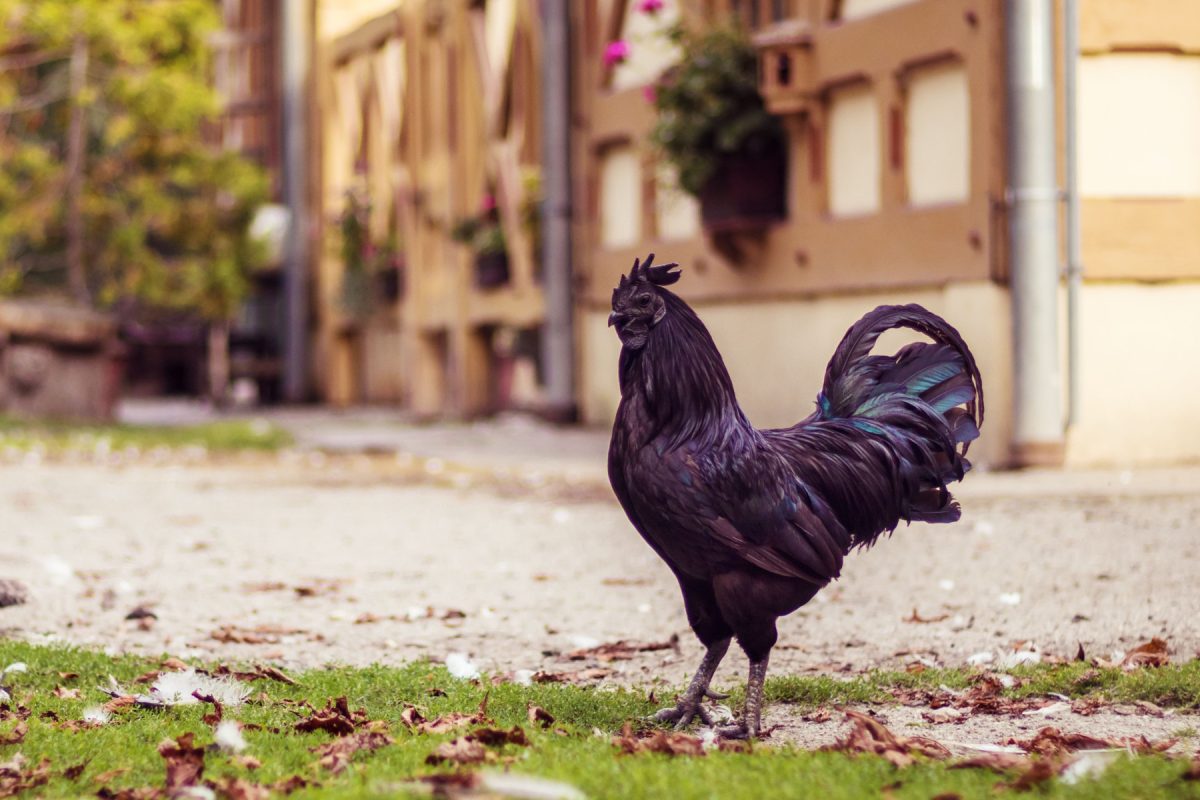 У этой курочки всё чёрное: перья, кожа, клюв, внутри мясо чёрное, кости чёрные. Выглядит жутковато, но красиво. Характер скрытный, сама по себе. Дорогая порода, редкая. Соседи будут в шоке точно.